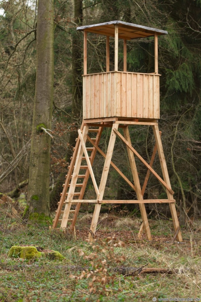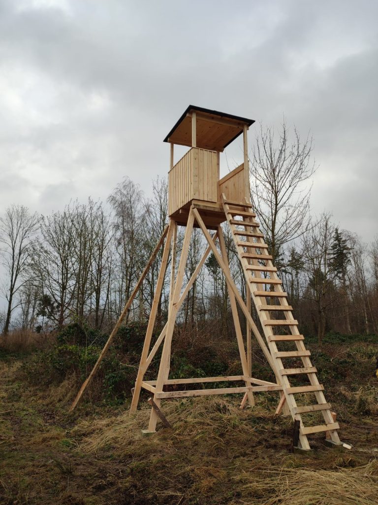 Alle unsere Untergestelle für offene, halb-offene sowie geschlossene Kanzeln und Schlafkanzeln sind durch diagonale Verstrebungen stark versteift und langlebig in Form und Stabilität.
